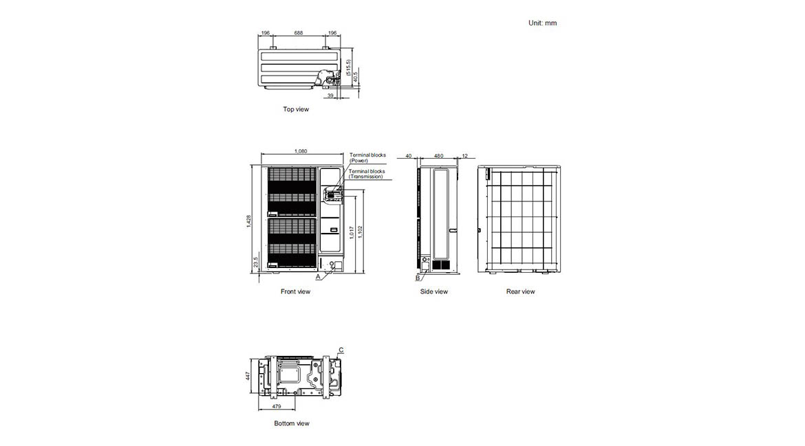 Outdoor Unit Dimensions mm (Height x Width x Depth) 1428 x 1080 x 480